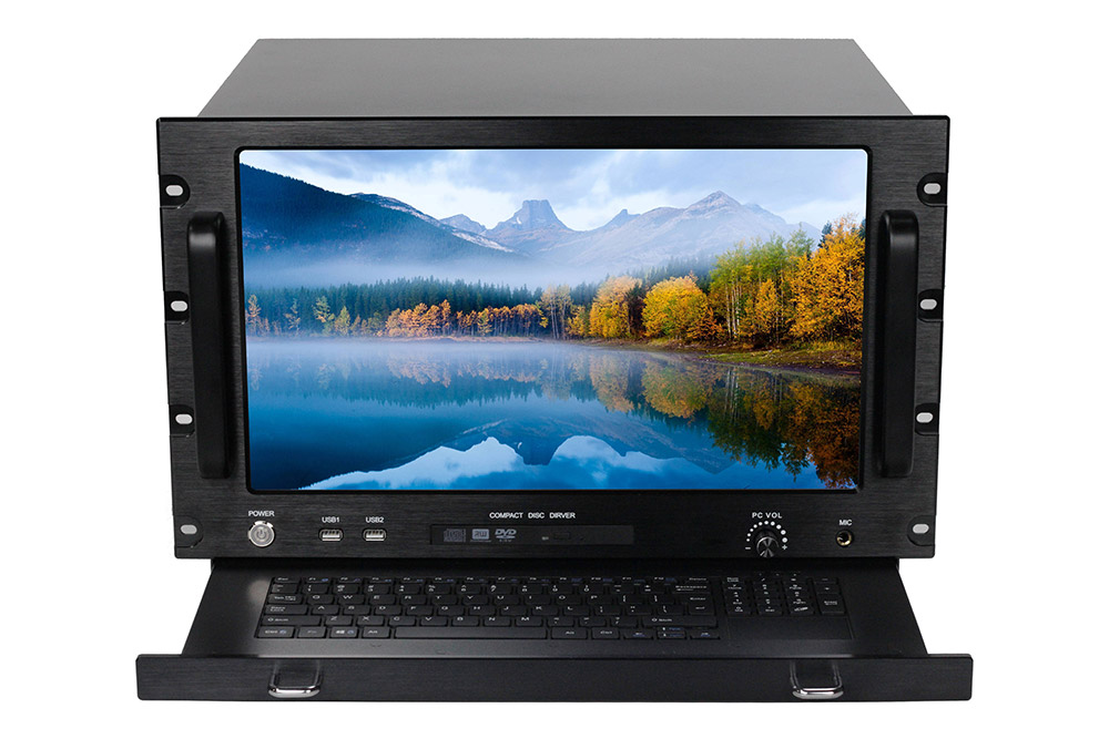 结构:7U铝合金黑色拉丝面板,嵌入触摸屏和数字矩阵键盘操作集成一体箱体结构